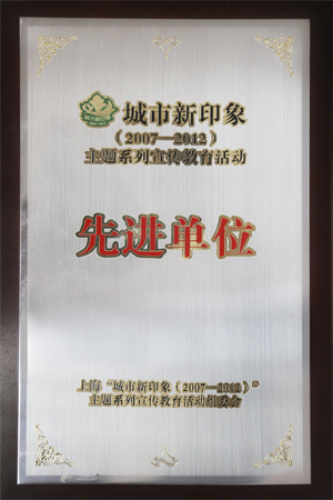 “城市新印象(2007-2012)”主題系列宣傳教育活動(dòng)先進(jìn)單位獎(jiǎng)牌。