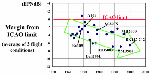 直升機(jī)噪聲水平發(fā)展趨勢。