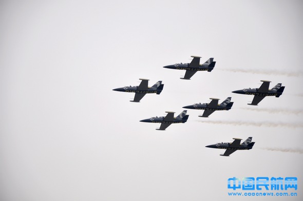 歐洲“百年靈”噴氣機特技飛行表演隊是全球唯一的私家特技飛行表演隊,隊員由清一色的法國空軍和“法蘭西巡邏兵”特技飛行表演隊的退役飛行員組成,平均每年都會在歐洲各大航展、F1賽事和其他體育賽事上進行50多場的表演,獲得過國際航聯(lián)飛行大賽民機編隊表演組冠軍。該表演隊曾在去年舉辦的第九屆中國航展上進行了精彩的中國首秀,驚險刺激的表演讓中外觀眾嘆為觀止。