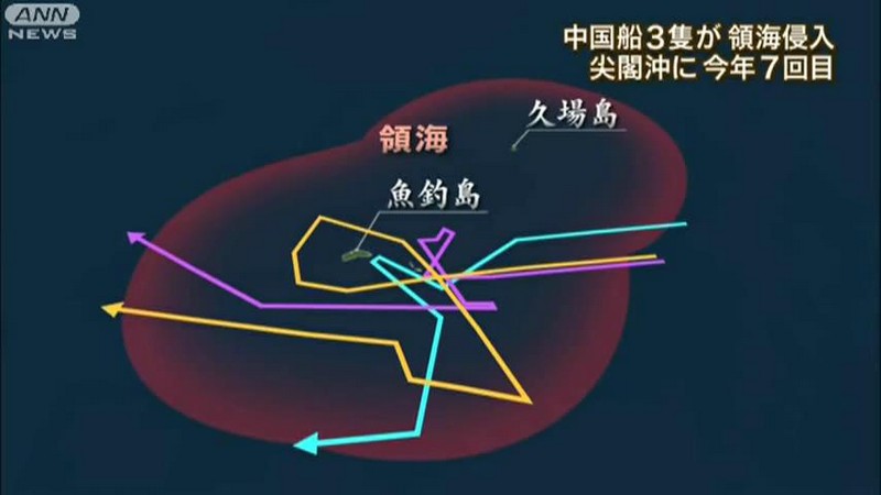 報道稱, 18日上午8時54分至9時17分,中國3艘海監(jiān)船相繼進入釣魚島附近的“日本領(lǐng)海”,日本海上保安廳巡邏船立即發(fā)出警告。中國“海監(jiān)50”則通過無線電用中文和英語回答稱,釣魚島及其附屬島嶼是中國領(lǐng)土。共同社稱,3艘中國船環(huán)繞釣魚島航行約5小時,“海監(jiān)50”最近時僅距島約1公里。