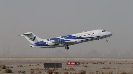 中國經(jīng)濟(jì)網(wǎng)訊 2013年3月31日,ARJ21-700飛機(jī)102架機(jī)進(jìn)行了轉(zhuǎn)場后的首次檢飛。102架機(jī)于上午9時21分在嘉峪關(guān)機(jī)場起飛,經(jīng)過1小時46分鐘的飛行,于11時07分降落,順利完成了檢飛任務(wù)。局方試飛員對飛機(jī)性能和狀態(tài)給予了肯定。