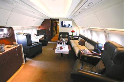 公務(wù)機機艙內(nèi)添置圓桌、臥室、會客沙發(fā)等,供商務(wù)旅客休閑使用 王浩然攝