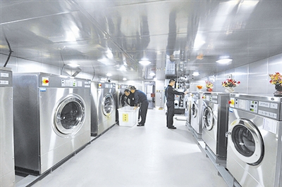 負責全體艦員衣物的洗滌、烘干、熨燙,所有送洗衣物上都統(tǒng)一掛上姓名標簽,艦員只需將待洗衣物裝進洗衣袋內(nèi),送至洗衣房,過半天時間自取即可。