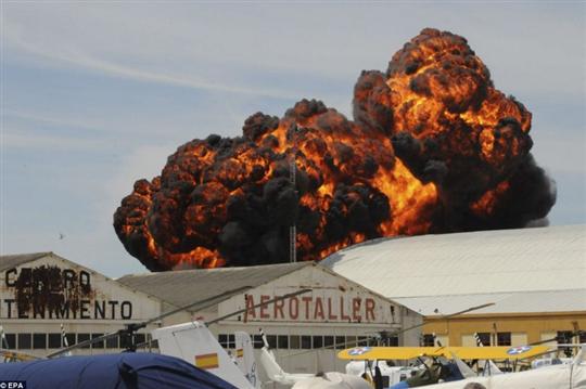 事故發(fā)生在西班牙首都馬德里西南方的Cuatro Vientos 機場,當(dāng)時約有3000名觀眾觀看在那里舉行的航展。當(dāng)失事飛機撞上電線并引發(fā)爆炸、噴射出巨大火球時,很多觀眾都被驚得目瞪口呆,其中一名觀眾拍攝下了事故當(dāng)時的畫面。