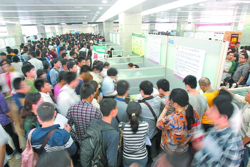 5月5日,招聘會(huì)現(xiàn)場(chǎng)人山人海,應(yīng)聘者云集。 大河報(bào)記者 陳曉東 攝
