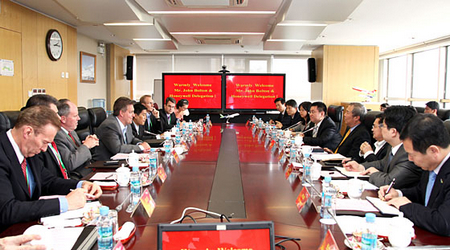 中國(guó)經(jīng)濟(jì)網(wǎng)訊 2013年5月7日,中國(guó)商飛公司副總經(jīng)理吳光輝會(huì)見了來訪的霍尼韋爾航空航天集團(tuán)首席執(zhí)行官馬天明和全球民用飛機(jī)總裁張博騰一行,雙方進(jìn)行了友好而深入的會(huì)談。