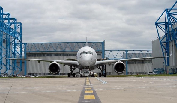 首架用于飛行測試的空客A350XWB寬體飛機(jī)日前在法國圖盧茲完成整體噴漆,這標(biāo)志著空客這一新型飛機(jī)又向預(yù)定今年夏季的首次飛行邁進(jìn)一步。
