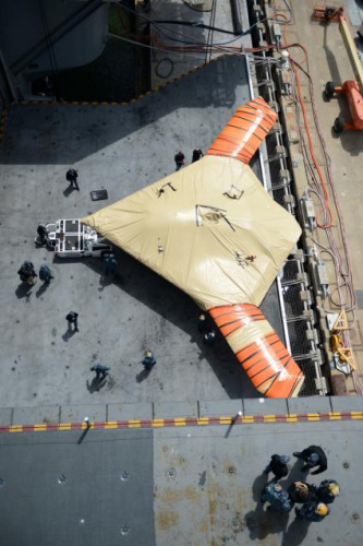 NAVAIR表示,該機(jī)將在“布什”號(hào)上進(jìn)行至少一次彈射起飛,并將執(zhí)行觸艦復(fù)飛。但是,在此輪試驗(yàn)試飛中,這架X-47B將不會(huì)在“布什”號(hào)上進(jìn)行攔阻著艦。在此之前,一架X-47B已于2013年5月4日,在馬里蘭州帕圖克森特河海軍航空站的試驗(yàn)場(chǎng)完成了首次陸基攔阻降落試驗(yàn)。在NAVAIR于5月6日發(fā)布的一份聲明中,美國(guó)海軍UCAS項(xiàng)目經(jīng)理、海軍上校杰米 恩格道爾(Capt. Jaime Engdahl)表示,將一架無(wú)人機(jī)降落在航母上,將是“無(wú)人作戰(zhàn)航空系統(tǒng)”驗(yàn)證項(xiàng)目(由諾斯羅普?格魯門(mén)公司研制的X-47B就是該項(xiàng)目的產(chǎn)物)最為非凡的成就,它將成為美國(guó)海軍十年來(lái)無(wú)人機(jī)/航母集成工作的高潮。NAVAIR的官員們表示,在確定X-47B在航母上進(jìn)行攔阻著艦的進(jìn)度計(jì)劃之前,將繼續(xù)評(píng)估在帕圖克森特河試驗(yàn)中所獲得的數(shù)據(jù)。