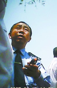 第一個(gè)趕到現(xiàn)場搶救傷者的他正在向領(lǐng)導(dǎo)匯報(bào)當(dāng)時(shí)的情況。記者 陶剛 攝