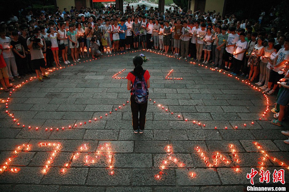 7月8日,市民在江山市須江公園內(nèi)為韓亞空難遇難中國(guó)女生默哀祈福。7日凌晨,在美國(guó)舊金山國(guó)際機(jī)場(chǎng)著陸時(shí)失事的韓亞航空公司波音777型客機(jī)已經(jīng)造成至少2人死亡,韓亞航空向浙江江山市政府發(fā)去傳真,稱根據(jù)登機(jī)牌,參加江山中學(xué)赴美夏令營(yíng)的兩名女生王琳佳和葉夢(mèng)圓在此次空難中不幸罹難。中新社發(fā) 李晨韻 攝