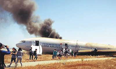 韓國亞洲航空公司波音777-200型客機(jī)在美國舊金山國際機(jī)場降落中發(fā)生事故,燃起大火。
