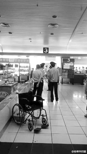 與此同時在微博上也有其他在現(xiàn)場的網(wǎng)友發(fā)微博稱:“一隊去南京的旅客,由于里面許多殘疾人帶拐杖,機組出于安全考慮不同意登機,現(xiàn)場比較混亂。有沒有相關規(guī)定,安檢能過但不能登機,問題出在哪兒呢? ”