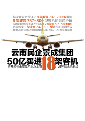 上周末,景成集團(tuán)正在籌建的全資子公司——云南瑞麗航空公司與美國波音公司、德國柏林航空公司簽訂總計18架客機的采購協(xié)議。在大手筆購進(jìn)飛機的背后,一個由30多人組成的籌備團(tuán)隊在一月前悄然入駐昆明,并緊鑼密鼓地開展籌建工作。