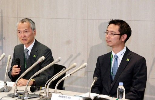 春秋航空日本分公司總經(jīng)理鵜飼博(左)5日在東京出席記者會