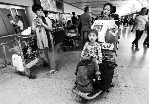 ▲ 9月15日,“海娜號”滯留游客抵達(dá)首都國際機(jī)場2號航站樓。 新華社記者 張宇攝