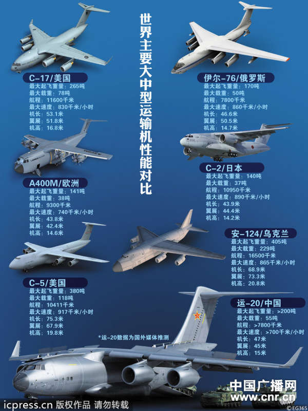各國(guó)運(yùn)輸機(jī)對(duì)比