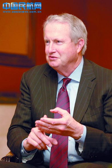 3月5日-9日,美國(guó)波音公司執(zhí)行副總裁、民機(jī)集團(tuán)總裁兼首席執(zhí)行官安波杰訪問我國(guó)。這期間,他代表波音公司與中國(guó)商飛簽署了合作協(xié)議,宣布雙方將在北京創(chuàng)建波音—中國(guó)商飛航空節(jié)能減排技術(shù)中心,支持旨在提高民用航空業(yè)燃油效率和減少溫室氣體排放的研究項(xiàng)目。除該活動(dòng)外,安波杰還拜訪了北京、上海和廣州等地的航空客戶,就加強(qiáng)合作進(jìn)一步進(jìn)行溝通。在北京期間,安波杰特意接受了本報(bào)的專訪。