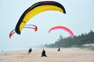 這是一群“斗傘”的人,從他們的如小麥般的膚色不難看出他們對(duì)于陽(yáng)光和沙灘的熱愛(ài),他們手中的滑翔傘在海風(fēng)中像撐滿了的帆,似乎稍一放松,它就會(huì)帶著操縱者乘著風(fēng)向天邊飛去,地上的操縱者則像在與大自然較量,他們把身體重心放到最低,幾乎都要坐在甚至躺在沙灘上。