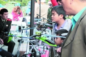 航模攤位前的孩子