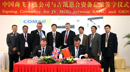 中國經(jīng)濟網(wǎng)訊 2012年11月14日在第九屆珠海航展期間,中國商飛上飛公司與吉凱恩航宇簽署合資備忘錄,中國商飛公司副總經(jīng)理史堅忠、吉凱恩航宇亞太及歐洲首席執(zhí)行官施喜飛出席了中國商飛上飛公司與吉凱恩航宇的簽約儀式。