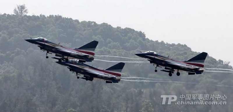 第9屆中國(guó)航空航天博覽會(huì)開幕在即。中國(guó)人民解放軍空軍八一飛行表演隊(duì)已到達(dá)珠海機(jī)場(chǎng)。 11月10日,珠海機(jī)場(chǎng)多云,八一飛行表演隊(duì)的飛行健兒進(jìn)行了“熱身訓(xùn)練”。記者在現(xiàn)場(chǎng)記錄了他們駕駛殲10戰(zhàn)機(jī)在云中穿梭的情景。親眼見(jiàn)證 “三機(jī)箭隊(duì)起飛”、“4機(jī)菱形隊(duì)斤頭”、“5、6號(hào)機(jī)繞軸滾轉(zhuǎn)”、“4機(jī)菱形放起落架斜盤旋”、“4機(jī)疊羅漢”等新增的高難度動(dòng)作的風(fēng)采。(來(lái)源:中國(guó)軍網(wǎng))