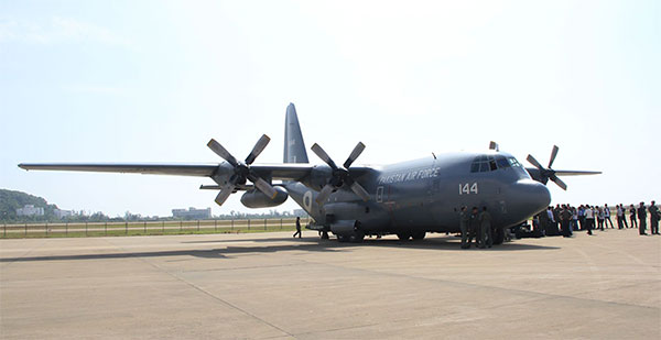 巴基斯坦空軍先遣機(jī)C-130運(yùn)輸機(jī)于11月9日中午抵達(dá)珠海航展現(xiàn)場(chǎng)。據(jù)悉,今天下午巴基斯坦空軍梟龍戰(zhàn)斗機(jī)也將抵達(dá)珠海。