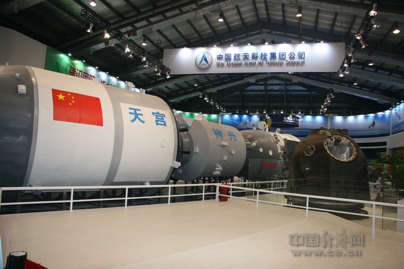中國經(jīng)濟(jì)網(wǎng)珠海航展特派記者團(tuán)記者 王飛 11月16日報(bào)道 在11月13日開幕的2012珠海航展上,在中國航天館展出的神九和天宮。
