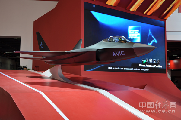 中航工業(yè)展館里的比例為1:4先進(jìn)戰(zhàn)斗機(jī)概念機(jī) 中國(guó)經(jīng)濟(jì)網(wǎng)記者 段丹峰 攝
