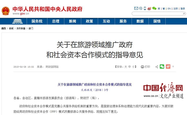 關(guān)于在旅游領(lǐng)域推廣政府和社會資本合作模式的指導(dǎo)意見