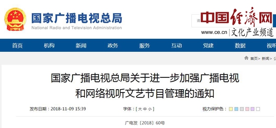 經(jīng)濟日報-中國經(jīng)濟網(wǎng)北京11月20日訊 日前,國家廣播電視總局發(fā)布了《關于進一步加強廣播電視和網(wǎng)絡視聽文藝節(jié)目管理的通知》(以下簡稱“通知”)?!锻ㄖ分赋?,一些文藝節(jié)目出現(xiàn)了影視明星過多、追星炒星、泛娛樂化、高價片酬、收視率(點擊率)造假等問題,不僅推高制作成本、破壞行業(yè)秩序生態(tài),而且誤導青少年盲目追星,滋長拜金主義、一夜成名等錯誤價值觀念,必須采取有效措施切實加以糾正。