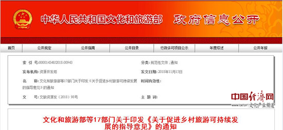 經(jīng)濟(jì)日?qǐng)?bào)-中國(guó)經(jīng)濟(jì)網(wǎng)北京12月11日訊 為深入貫徹落實(shí)《中共中央 國(guó)務(wù)院關(guān)于實(shí)施鄉(xiāng)村振興戰(zhàn)略的意見(jiàn)》(中發(fā)〔2018〕1號(hào))和《鄉(xiāng)村振興戰(zhàn)略規(guī)劃(2018-2022年)》,推動(dòng)鄉(xiāng)村旅游提質(zhì)增效,促進(jìn)鄉(xiāng)村旅游可持續(xù)發(fā)展,加快形成農(nóng)業(yè)農(nóng)村發(fā)展新動(dòng)能,近日文化和旅游部等17部門(mén)聯(lián)合印發(fā)《關(guān)于促進(jìn)鄉(xiāng)村旅游可持續(xù)發(fā)展的指導(dǎo)意見(jiàn)》(以下簡(jiǎn)稱(chēng)《意見(jiàn)》),《意見(jiàn)》提出,到2022年,旅游基礎(chǔ)設(shè)施和公共服務(wù)設(shè)施進(jìn)一步完善,鄉(xiāng)村旅游服務(wù)質(zhì)量和水平全面提升,富農(nóng)惠農(nóng)作用更加凸顯,基本形成布局合理、類(lèi)型多樣、功能完善、特色突出的鄉(xiāng)村旅游發(fā)展格局。