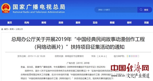 總局辦公廳關(guān)于開展2019年“中國經(jīng)典民間故事動漫創(chuàng)作工程(網(wǎng)絡(luò)動畫片)”扶持項(xiàng)目征集活動的通知