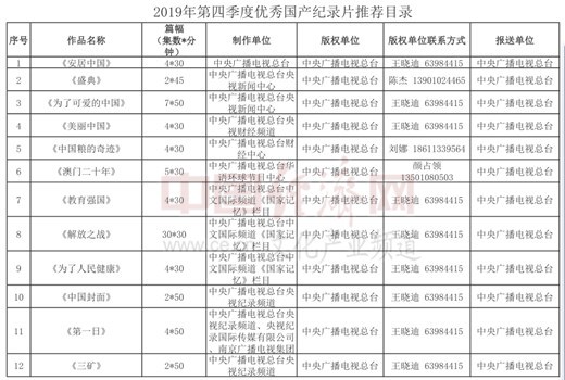 經(jīng)濟(jì)日報-中國經(jīng)濟(jì)網(wǎng)北京5月25日訊 近日,國家廣播電視總局辦公廳公布《2019年第四季度優(yōu)秀國產(chǎn)紀(jì)錄片推薦目錄》,經(jīng)全國選送、評委網(wǎng)上審聽審看、填寫投票表并簽字等過程后,《安居中國》等87部作品從報送單位參與選送的272部紀(jì)錄片中脫穎而出,入選2019年第四季度優(yōu)秀國產(chǎn)紀(jì)錄片。中央廣播電視總臺、北京市廣播電視局、上海市廣播電視局等報送單位入選作品數(shù)量位居前列。
