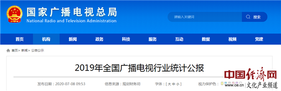 2019年全國廣播電視行業(yè)統(tǒng)計公報