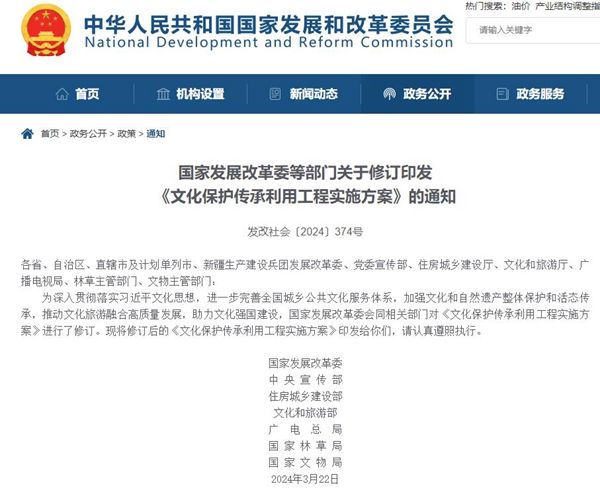 中國經(jīng)濟(jì)網(wǎng)北京4月8日訊(記者 成琪)據(jù)國家發(fā)改委網(wǎng)站4月7日消息,為進(jìn)一步完善全國城鄉(xiāng)公共文化服務(wù)體系,加強(qiáng)文化和自然遺產(chǎn)整體保護(hù)和活態(tài)傳承,推動文化旅游融合高質(zhì)量發(fā)展,助力文化強(qiáng)國建設(shè),國家發(fā)展改革委會同相關(guān)部門對《文化保護(hù)傳承利用工程實(shí)施方案》(以下簡稱“《方案》”)進(jìn)行了修訂?!斗桨浮访鞔_,要依托國家級資源新建或改擴(kuò)建一批重大文化設(shè)施,提升公共文化服務(wù)水平,促進(jìn)優(yōu)秀傳統(tǒng)文化和寶貴自然遺產(chǎn)整體保護(hù)和活態(tài)傳承,推動高質(zhì)量發(fā)展和創(chuàng)造高品質(zhì)生活相得益彰。