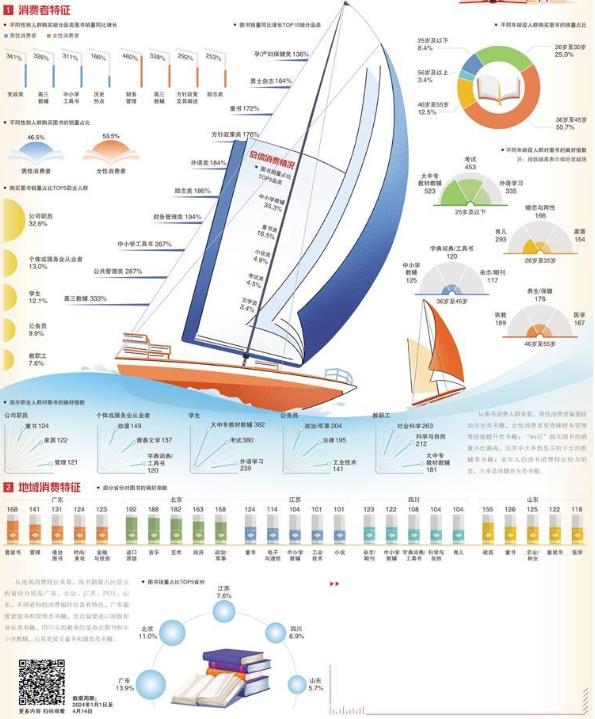圖書(shū)是人們求知的階梯,也是不少人遇到現(xiàn)實(shí)問(wèn)題時(shí),尋找解決途徑的重要選擇。無(wú)論是學(xué)生、職場(chǎng)人、管理者,還是年輕父母、中老年人,不同的閱讀偏好也體現(xiàn)出生活重心和關(guān)注點(diǎn)的區(qū)別。從圖書(shū)消費(fèi)人群來(lái)看,“80后”人群購(gòu)買(mǎi)圖書(shū)的銷(xiāo)量占比最高,超過(guò)了50%。從圖書(shū)銷(xiāo)量及增長(zhǎng)的占比情況來(lái)看,教輔類(lèi)圖書(shū)最受歡迎,增長(zhǎng)勢(shì)頭十分強(qiáng)勁。