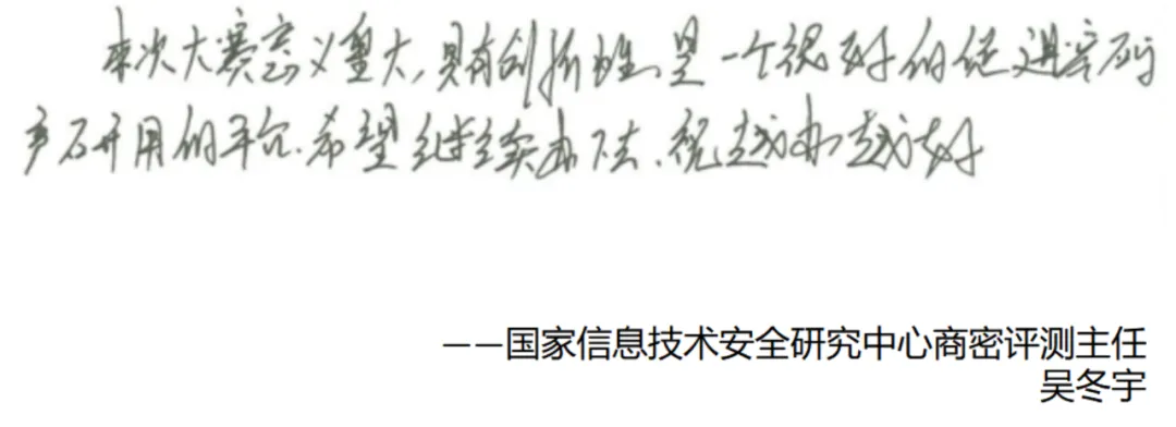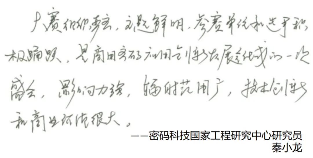 賽后,密碼科技國(guó)家工程研究中心研究員秦小龍、中國(guó)電力科學(xué)研究院高級(jí)工程師李智虎、中國(guó)科學(xué)院大學(xué)網(wǎng)絡(luò)空間安全學(xué)院教授/博導(dǎo)王躍武、國(guó)家信息技術(shù)安全研究中心商密評(píng)測(cè)主任吳冬宇等多位專家評(píng)委給大賽提出了寶貴的建議和意見(jiàn)。