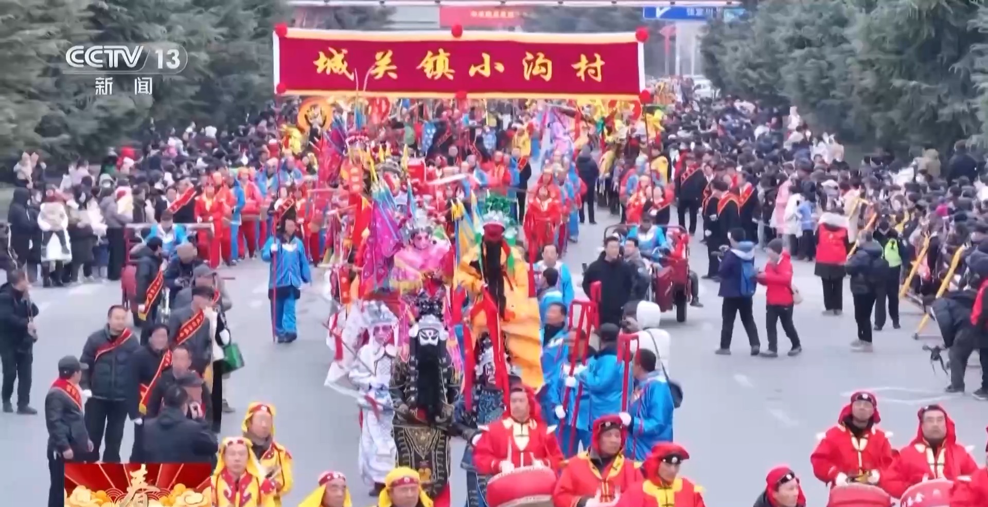 總臺央視記者 何莉:陜西隴縣的紙溝村正在進(jìn)行當(dāng)?shù)卮汗?jié)最具有儀式感的民俗活動——馬社火。高大的棗紅色馬便是今天隊伍的“探馬”。按照當(dāng)?shù)氐牧?xí)俗,送帖官會挨家挨戶給鄉(xiāng)親們送“請?zhí)保埓蠹夜哺斑@場新春的盛會。