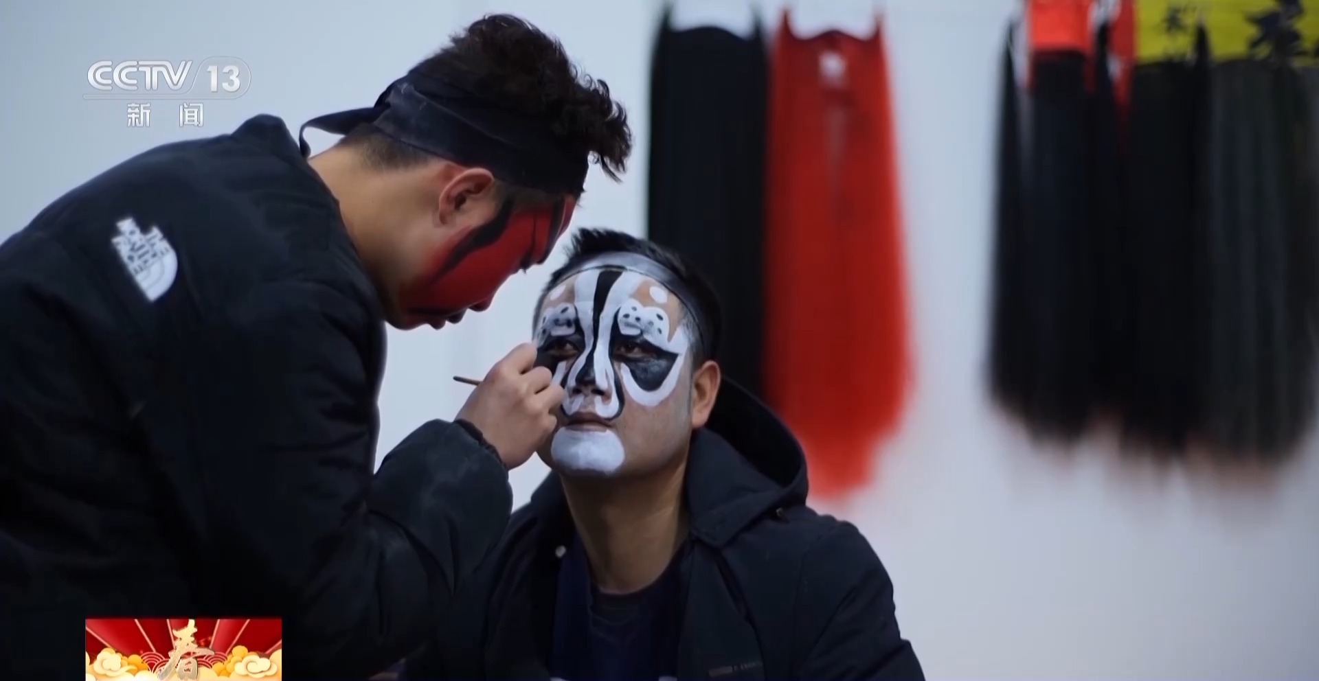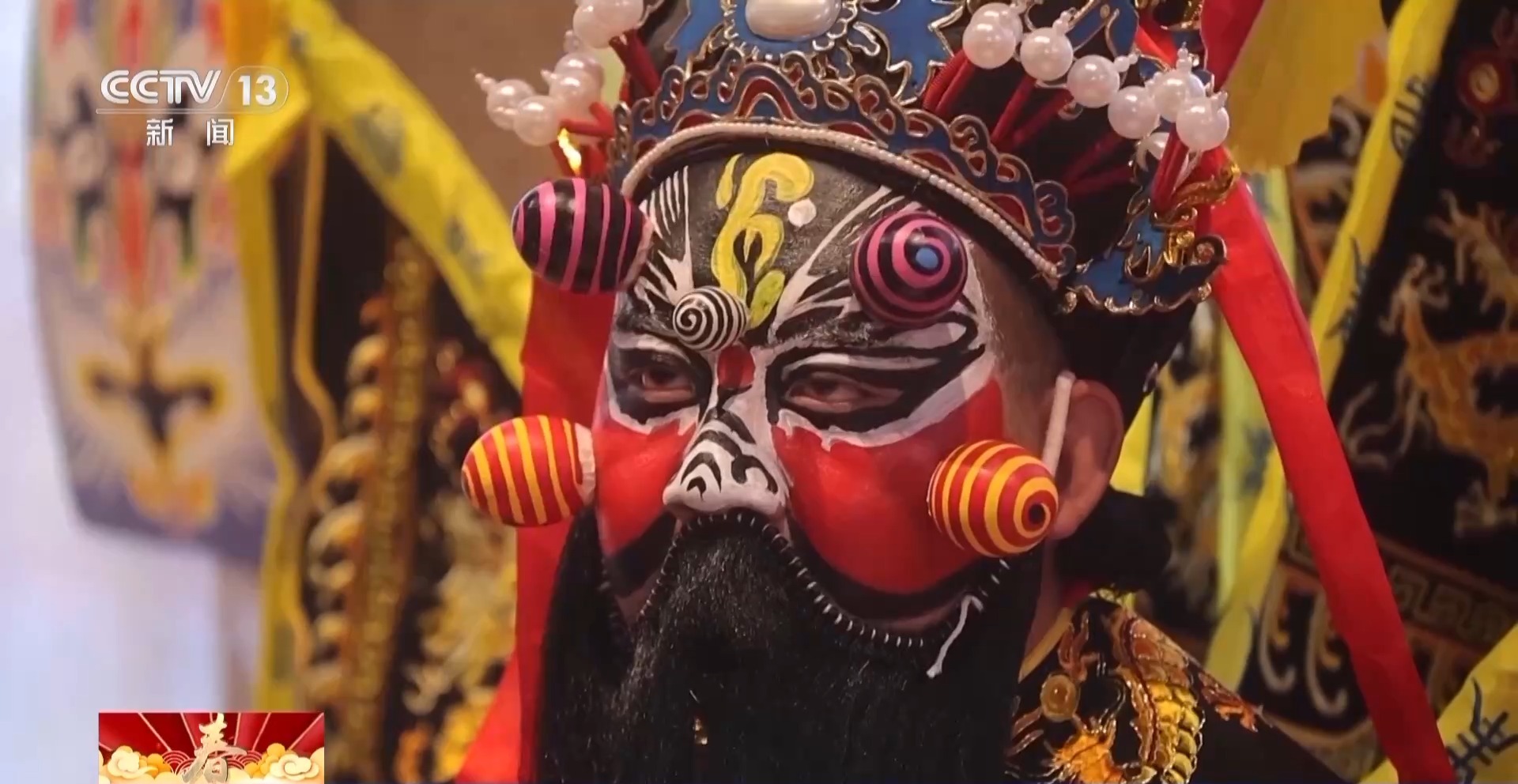 總臺央視記者 何莉:這個角色就是社火當(dāng)中的黑虎趙公明,人們認(rèn)為他可以除瘟消災(zāi)、帶來財運(yùn)。他臉上凸起,看起來非常立體,而這些凸起就是用普通的雞蛋殼制作而成。