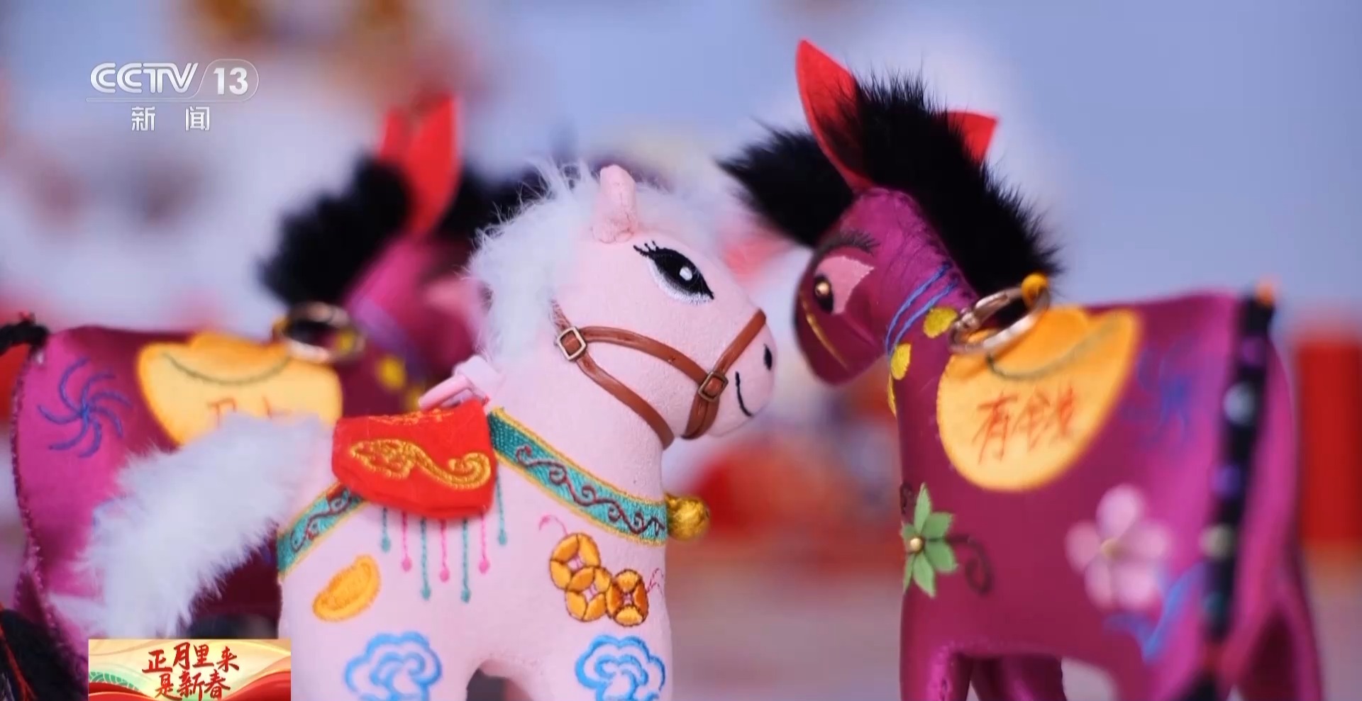 今年受歡迎的不只是馬社火的袍服,就連巡游的駿馬都被做成非??蓯鄣膾祜?,成為爆款。小馬掛飾身上的刺繡花紋和袍服上的繡法同出一脈,都是源自傳承千年的國家級非遺——西秦刺繡。這是一門源于生活、代代相傳的老手藝。