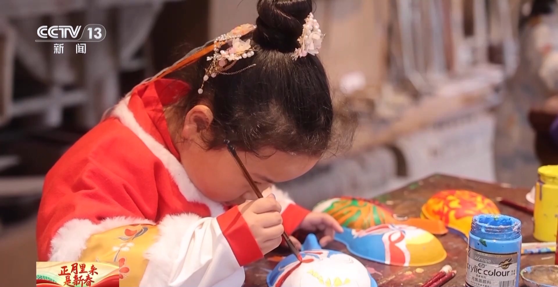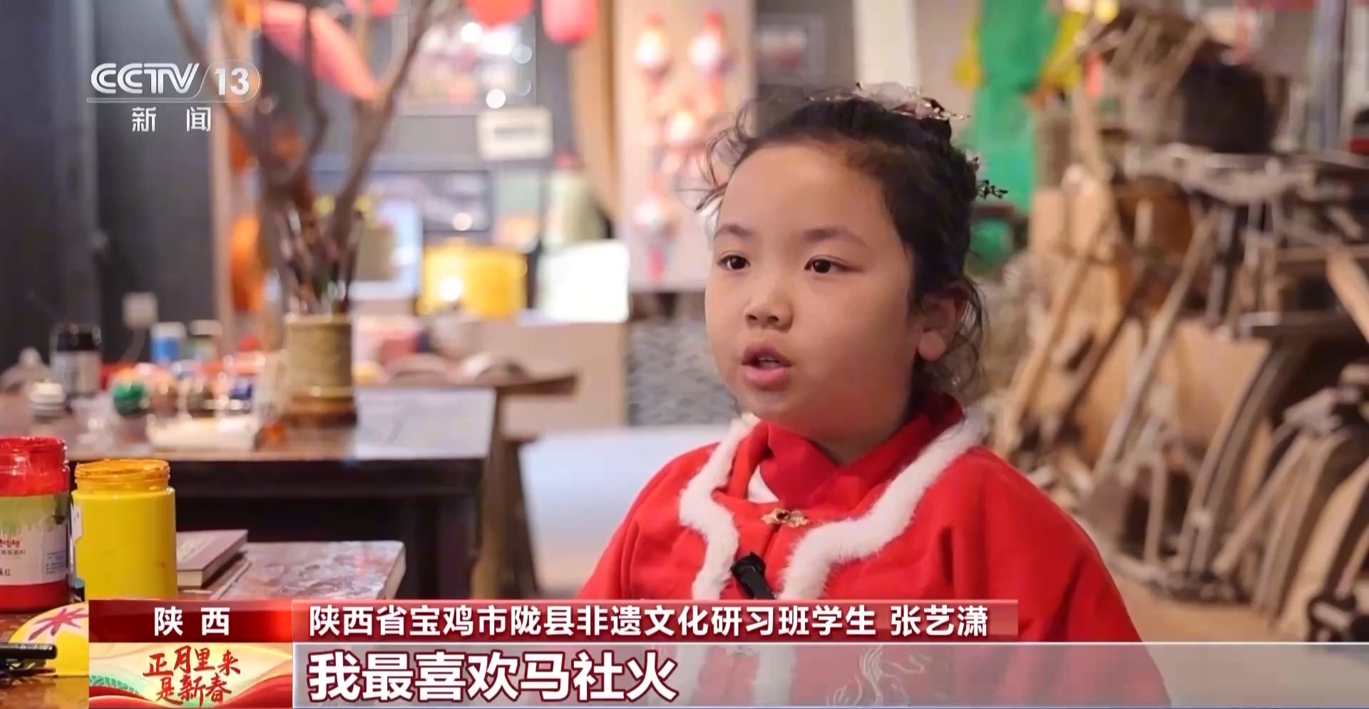 陜西省寶雞市隴縣非遺文化研習(xí)班學(xué)生 張藝瀟:我最喜歡馬社火,因?yàn)榉浅M?,我今天還畫了社火臉譜。