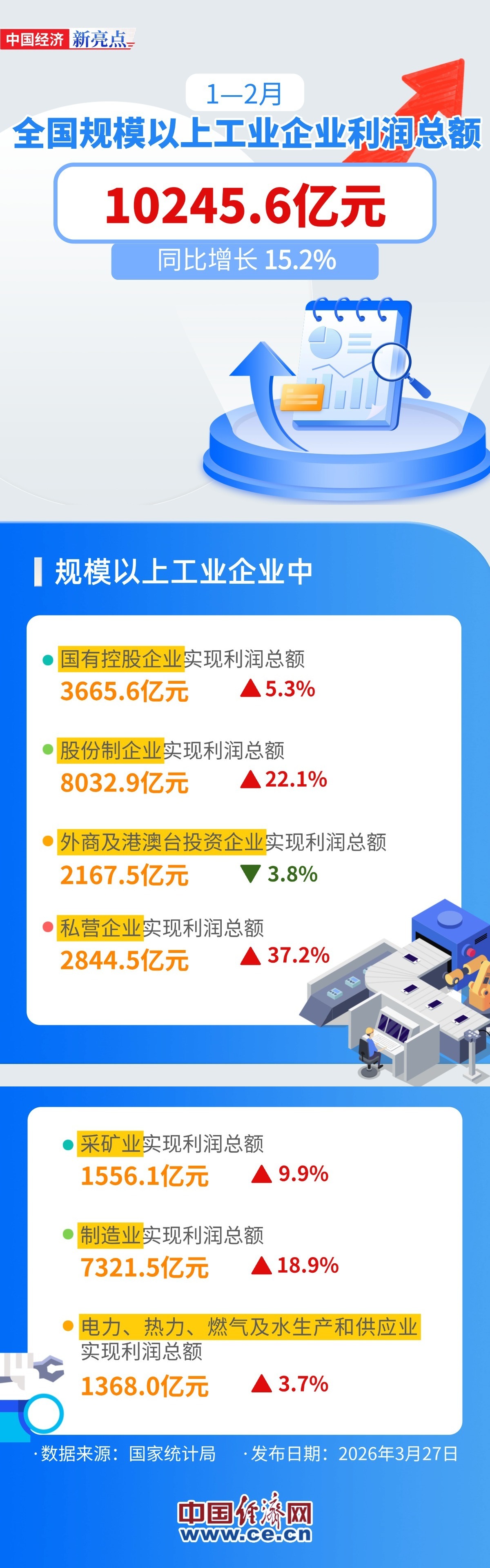 【圖解】1—2月全國(guó)規(guī)上工業(yè)企業(yè)利潤(rùn)實(shí)現(xiàn)兩位數(shù)增長(zhǎng)