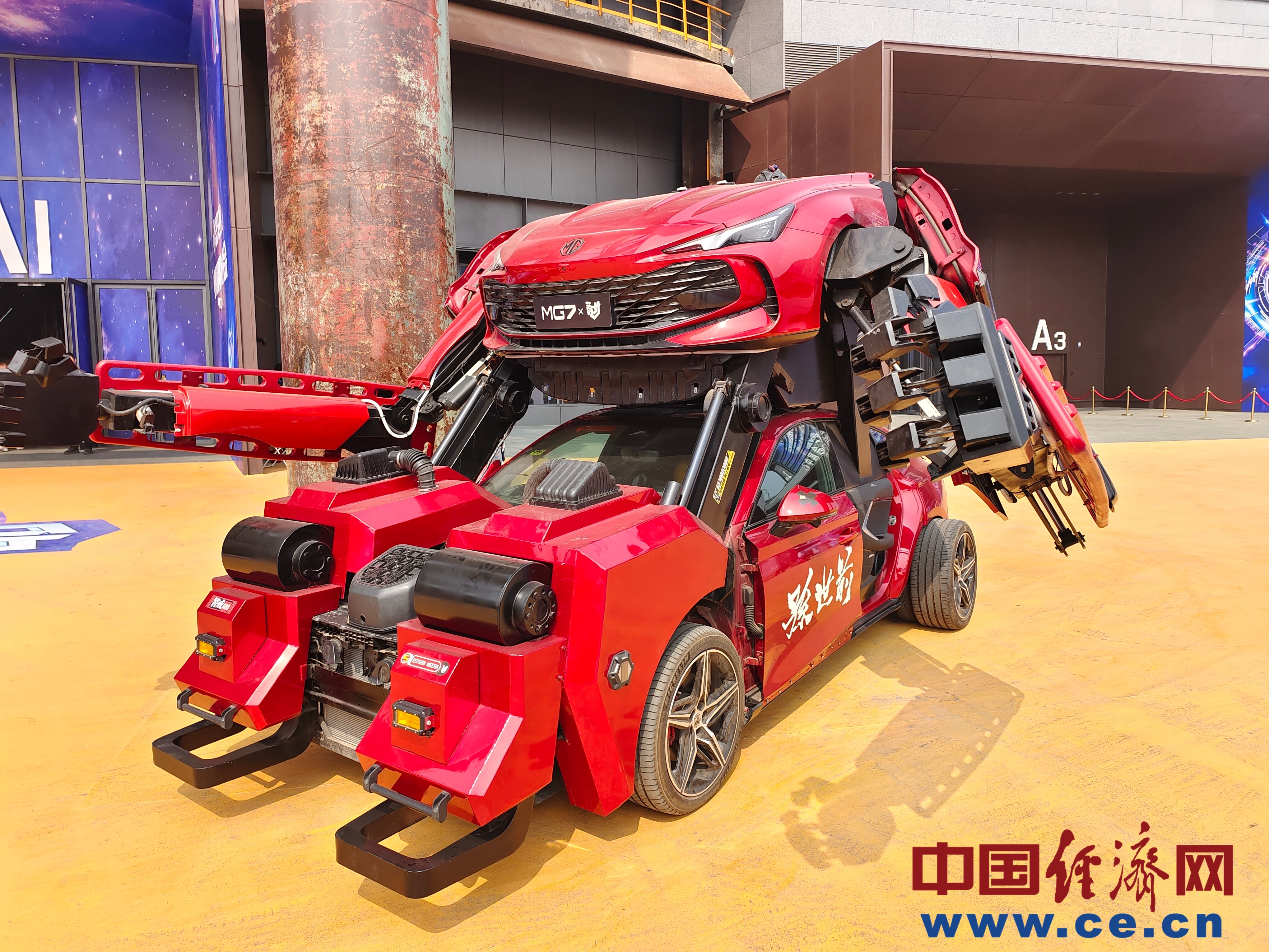 MECHASUN格斗汽車機甲,由孫世前帶領(lǐng)團(tuán)隊研發(fā)制作,該系列機甲采用了團(tuán)隊自主研發(fā)的專利架構(gòu)。中國經(jīng)濟(jì)網(wǎng)記者 朱曉倩/攝