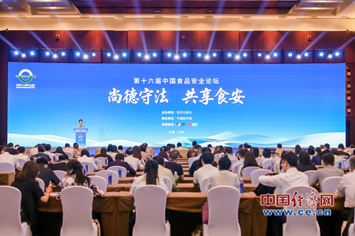 由經(jīng)濟日報社主辦、中國經(jīng)濟網(wǎng)承辦,主題為“尚德守法 共享食安”的第十六屆中國食品安全論壇9月11日在北京舉行。圖為論壇現(xiàn)場。