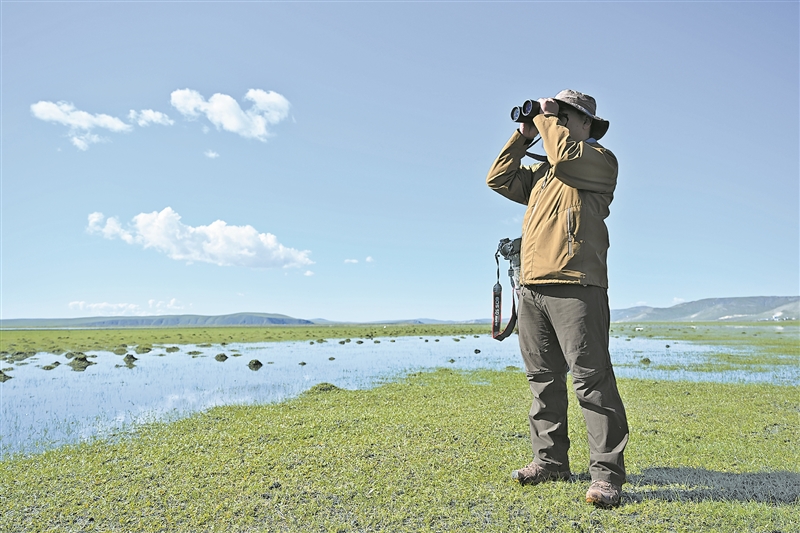 清晨,內(nèi)蒙古呼倫貝爾市額爾古納濕地涼意襲人。寶金財(cái)背著長(zhǎng)焦鏡頭、胸前掛著高倍望遠(yuǎn)鏡開始了他一周兩次的樣線調(diào)查之旅。27歲的寶金財(cái)是額爾古納濕地自然保護(hù)區(qū)管理局的一名鳥類保護(hù)工作人員。