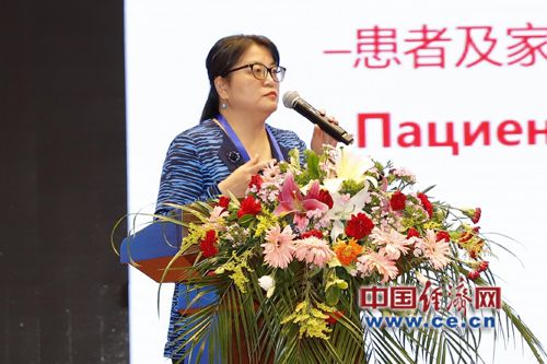 北京中醫(yī)藥大學(xué)東直門醫(yī)院血液腫瘤科主任醫(yī)師、國家中醫(yī)藥管理局中醫(yī)血液病學(xué)科帶頭人李冬云演講。李濤/攝