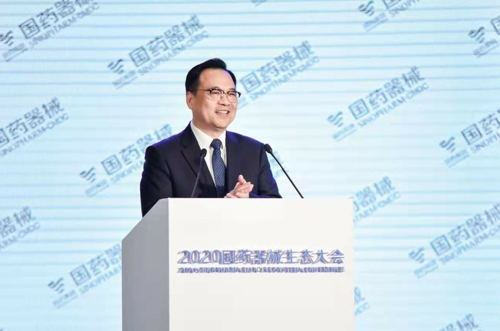 圖為國藥控股黨委書記、國藥器械董事長于清明做題為《聚力打造創(chuàng)新引擎,協(xié)同構(gòu)建發(fā)展新格局》的演講。