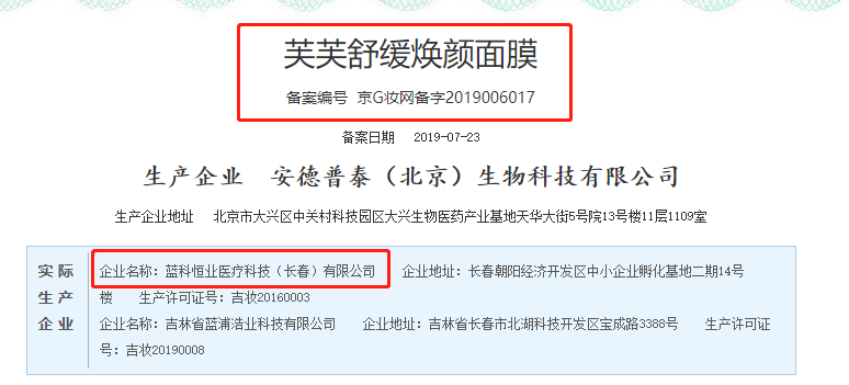 記者了解到,藍(lán)科恒業(yè)醫(yī)療科技(長春)有限公司是芙芙舒緩煥顏面膜、芙芙深澈潤顏面膜、芙芙抑痘凈顏面膜、芙芙清痘復(fù)顏面膜等產(chǎn)品的生產(chǎn)企業(yè)。其中芙芙舒緩煥顏面膜在網(wǎng)購平臺上芙芙官方旗艦店總銷售量達(dá)54萬。