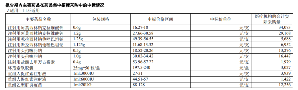 據(jù)其《2020年年度報告》,2020年內(nèi),華北制藥集采主要中標(biāo)產(chǎn)品還有注射用阿莫西林鈉克拉維酸鉀、注射用哌拉西林鈉他唑巴坦鈉、注射用頭孢噻肟鈉、注射用鹽酸去甲萬古霉素、環(huán)孢素軟膠囊、重組乙型肝炎疫苗等。不過,上述產(chǎn)品供應(yīng)如何,華北制藥在其回應(yīng)中尚未說明。