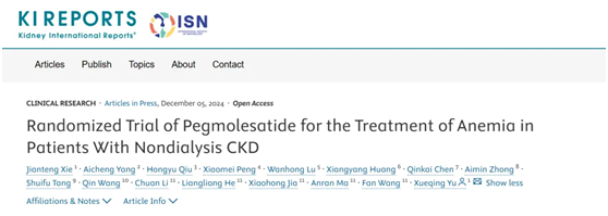 近日,國際腎臟病領域著名期刊Kidney International Reports(IF:5.7/Q1)在線發(fā)表了由廣東省人民醫(yī)院余學清教授牽頭的培莫沙肽注射液(商品名:圣羅萊)在非透析腎性貧血患者中開展的Ⅲ期臨床研究數(shù)據(jù)。